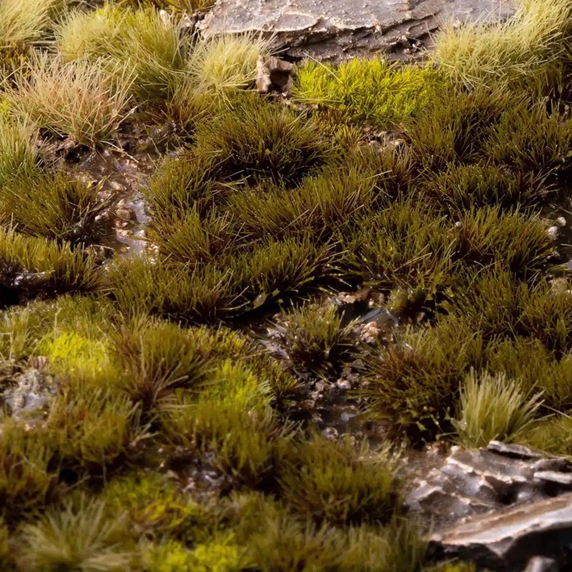 Tufts with green tips and darker, brownish bases. Best used to simulate low sedges and rushes from swamps, bogs and marshes, as well as dark grass-like herbs undergrowth shadowy canopies. In combination with other colours and sizes they provide a fantastic gradient of colours and flavours to your scenes.