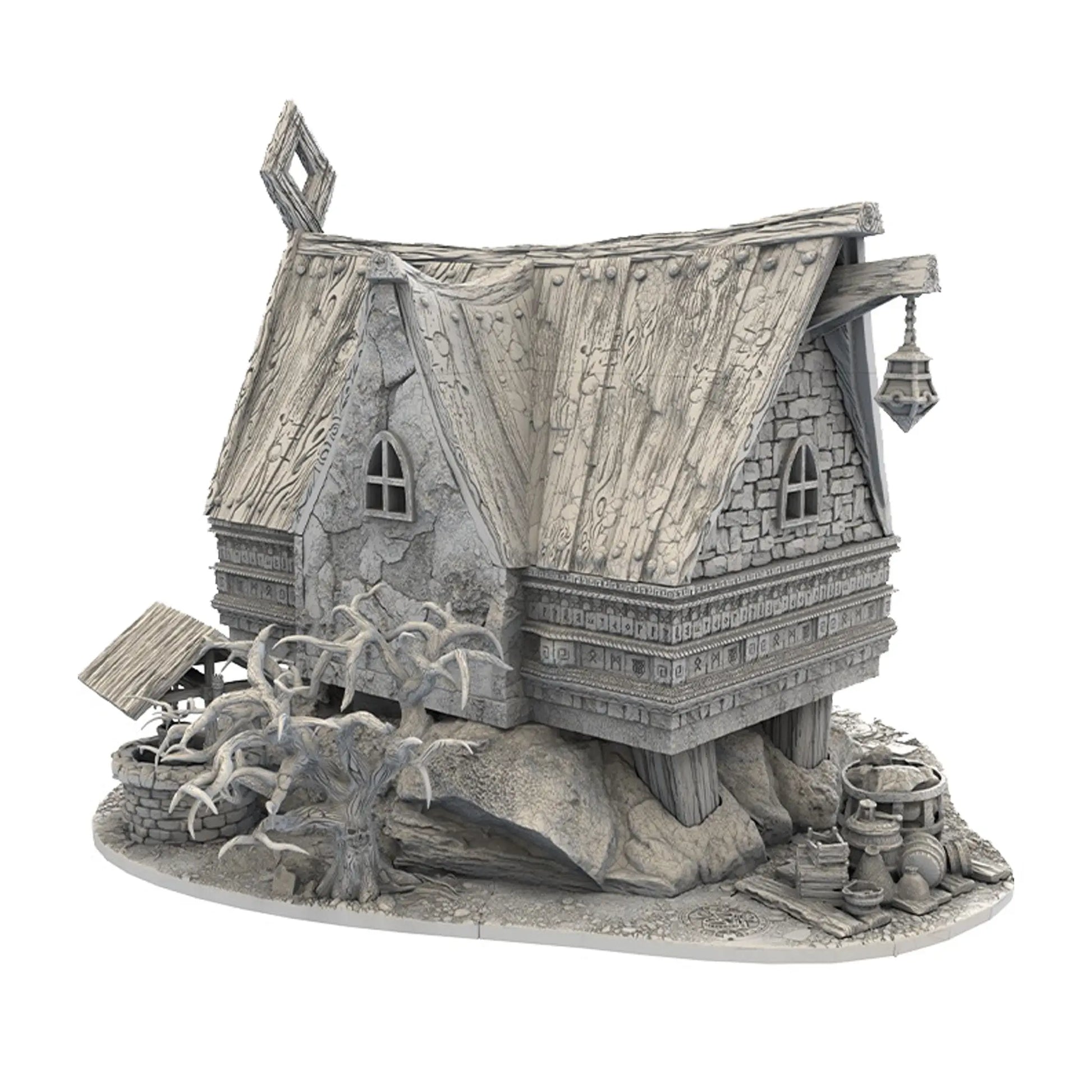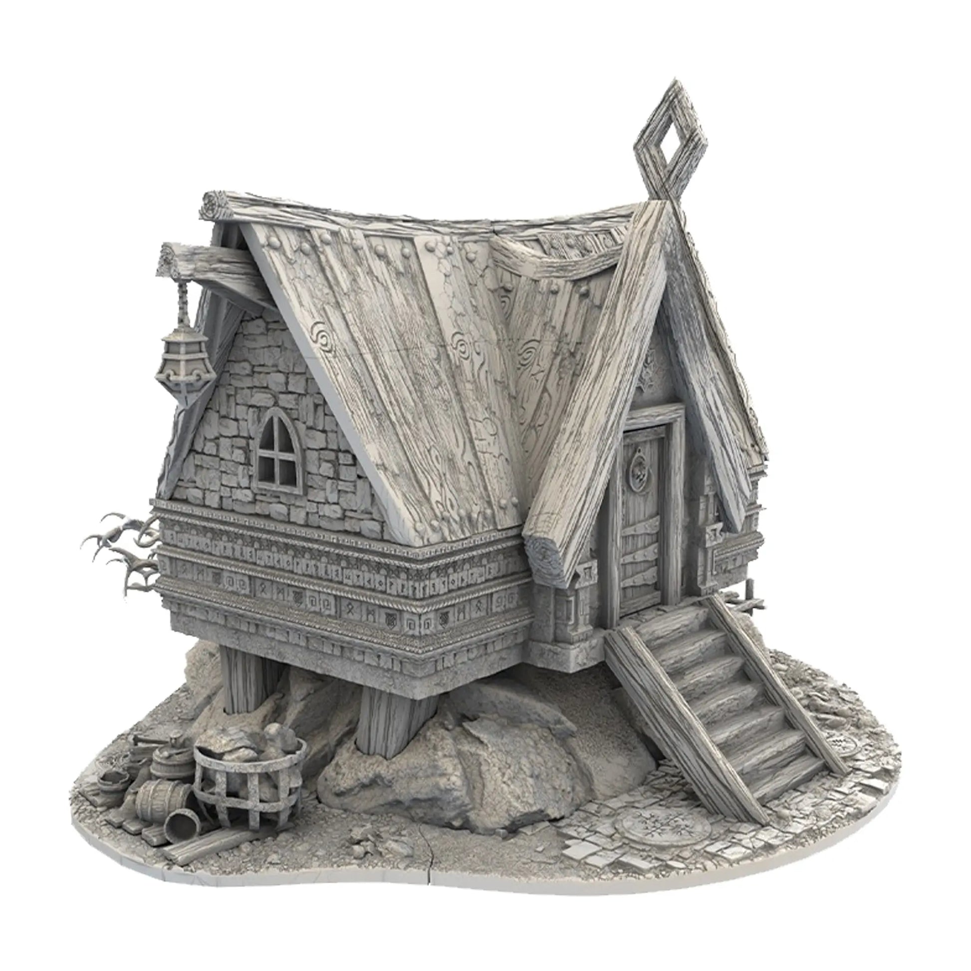 Mit diesem hochdetaillierten in Resin gedruckten Geländestück kannst du dir deine eigene Zwergenstadt errichten und eine einzigartige Spielwelt erschaffen. Das Haus und die Dekorationen sind so skaliert, dass sie zu 30 mm Tabletop Spielsysteme passen. Jedes Haus aus dieser Serie ist Innen bespielbar durch abnehmbare Dächer, haben ein detailliertes Innenleben und bewegliche Türen.