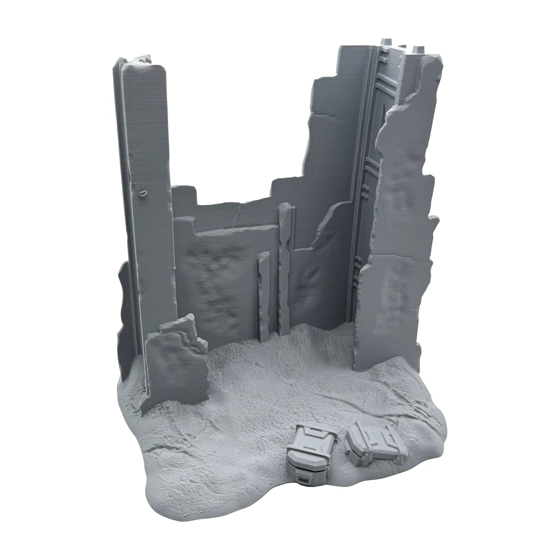 Mit diesem hochdetallierten PLA Druck on 0.16 mm Layer Auflösung und in matt grauer Farbe kannst du dir eine sagenhafte Spielwelt erschaffen. Die Metal Wreckage sind so skaliert, dass sie zu 35 mm Tabletop Spielsysteme passen. Der Bausatz besteht aus vier Teilen und wird unbemalt geliefert. Sofern Miniaturen abgebildet sind, dienen diese nur zum Größenbergleich (nicht im Lieferumfang enthalten). Das Set beinhaltet zwei Geländestücke.