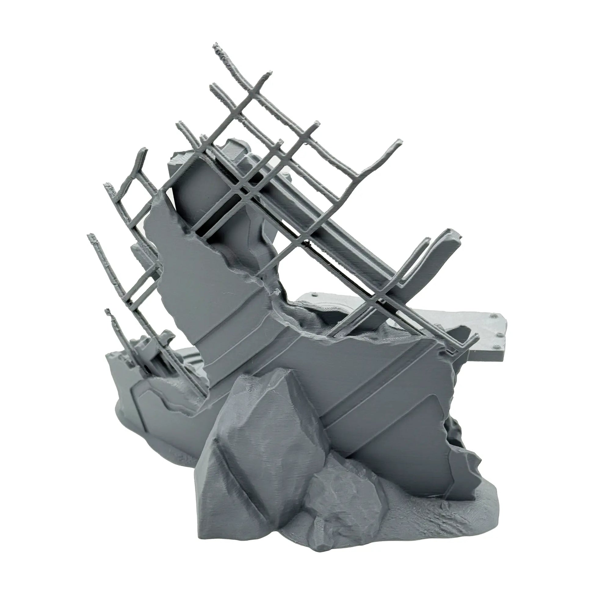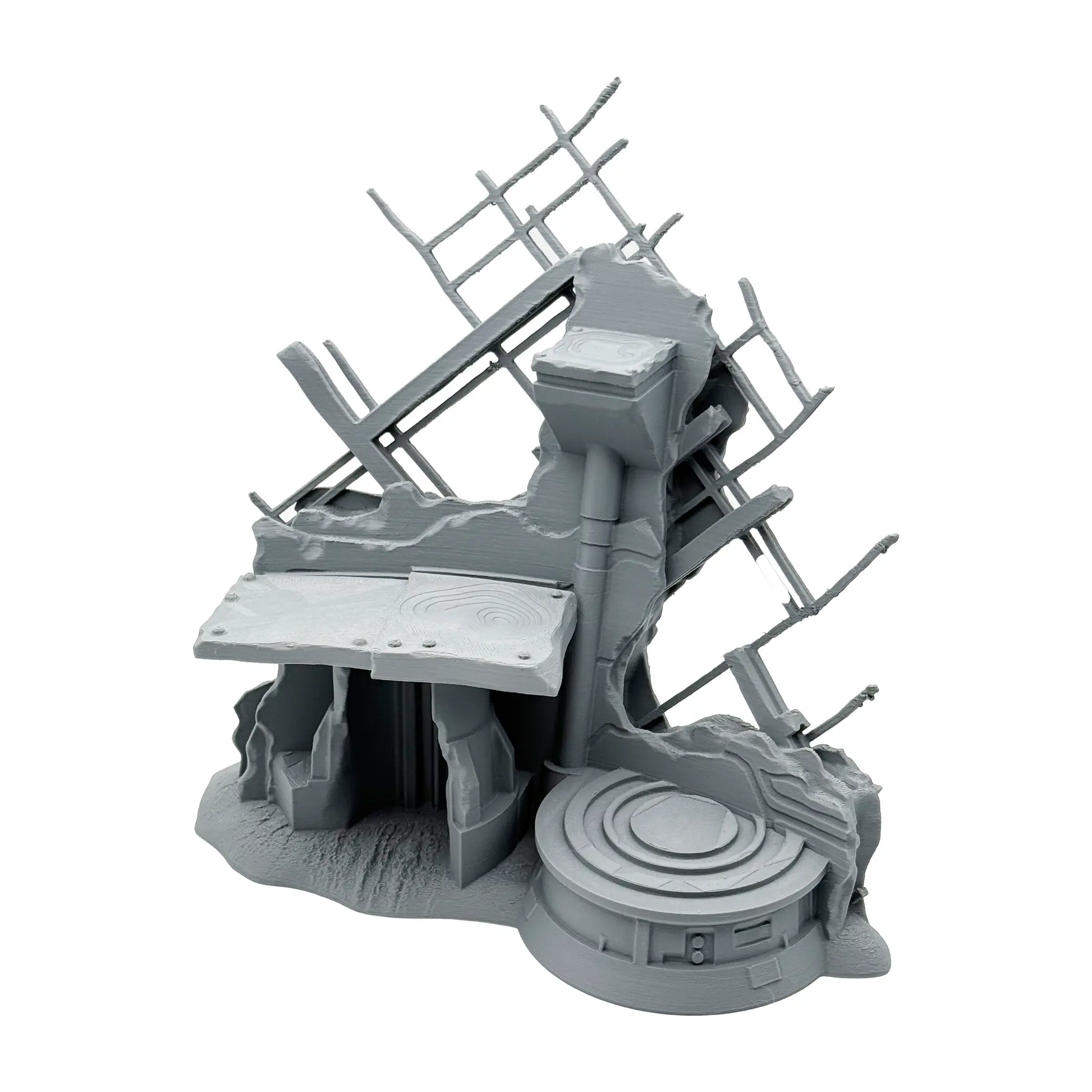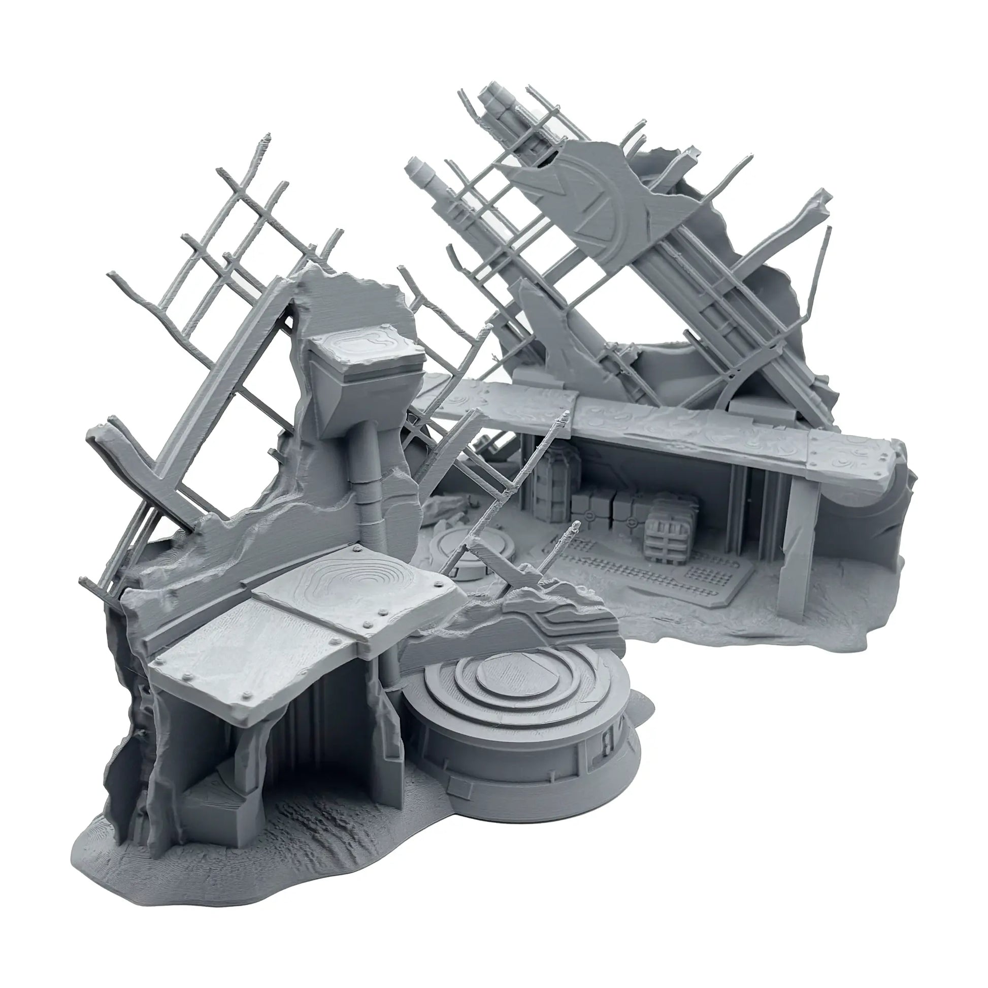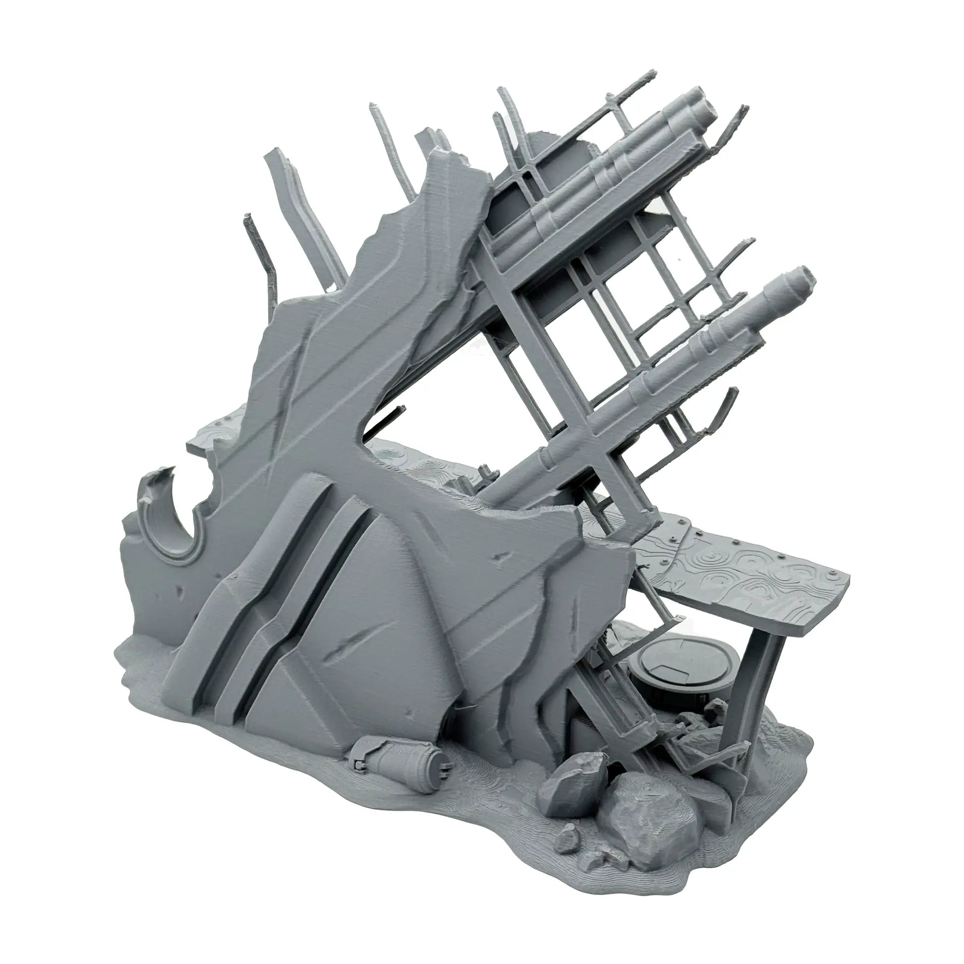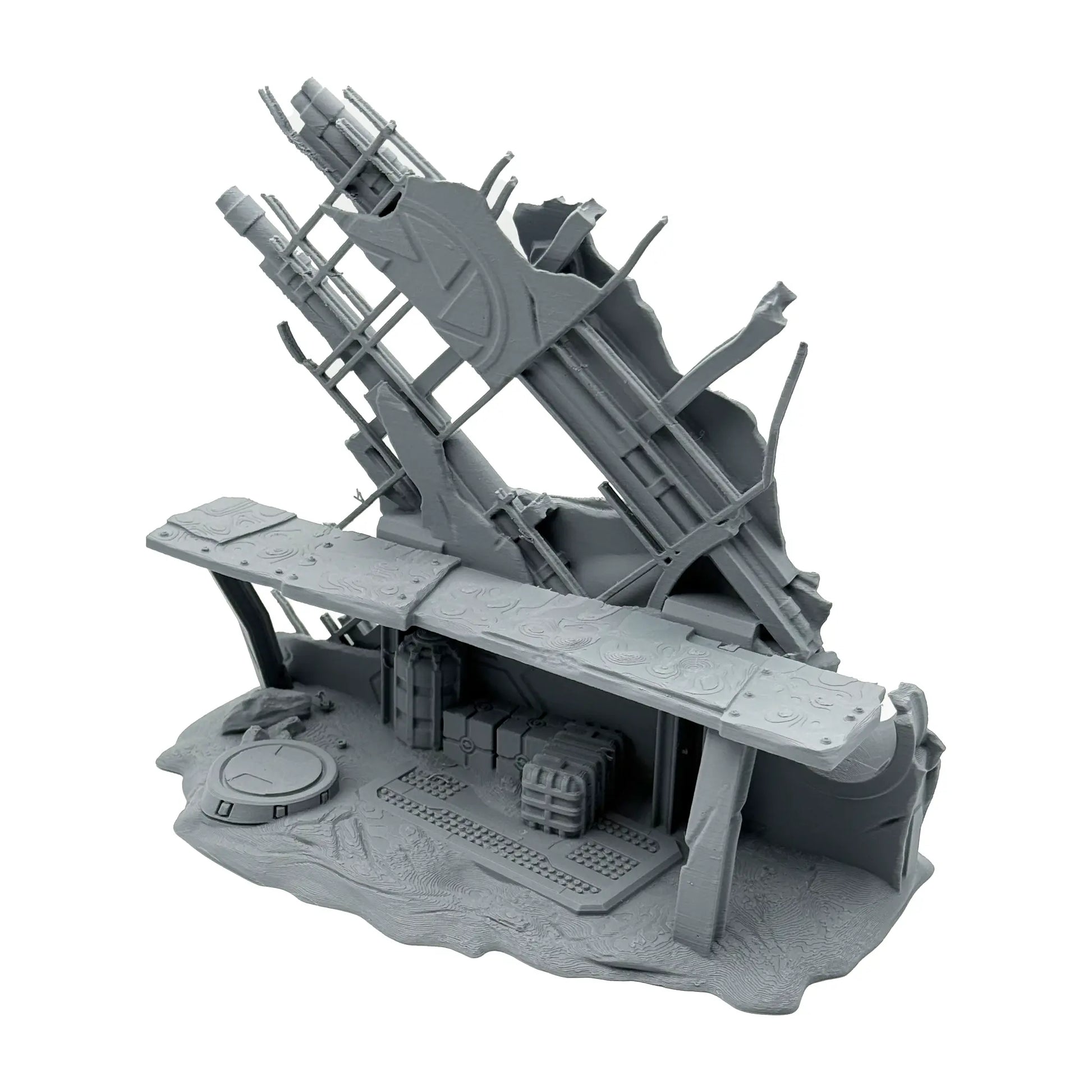 Mit diesem hochdetallierten PLA Druck on 0.16 mm Layer Auflösung und in matt grauer Farbe kannst du dir eine sagenhafte Spielwelt erschaffen. Der Fuselage Firing Point und dessen Dekorationen sind so skaliert, dass sie zu 35 mm Tabletop Spielsysteme passen. Der Bausatz besteht aus drei Teilen und wird unbemalt geliefert. Sofern Miniaturen abgebildet sind, dienen diese nur zum Größenbergleich (nicht im Lieferumfang enthalten). Das Set beinhaltet zwei Geländestücke.