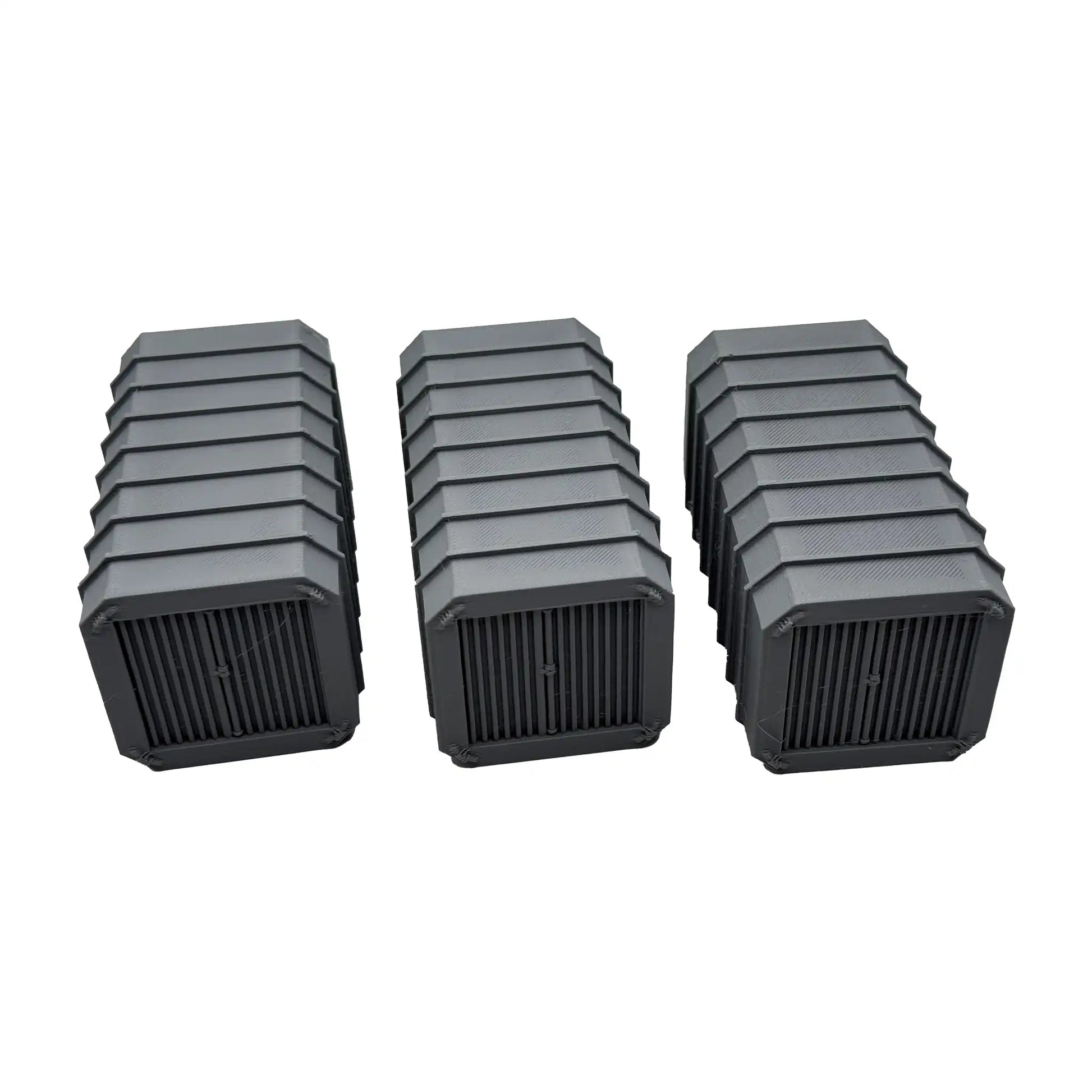 Kreiere mit diesem moduldaren Geländestück deine eigene postapokalytpische Welt im Shanty Town Stil und erschaffe dir ein sagenhaftes Spielfeld in Form einer Kolonie. Das abgebildete Modell ist aus hochbeständigem mattem PLA in 0,2 mm Layer Auflösung und in grauer Farbe mit hervorragenden Details gedruckt und wird unbemalt geliefert. Dieses Set beinhaltet 3 Container.