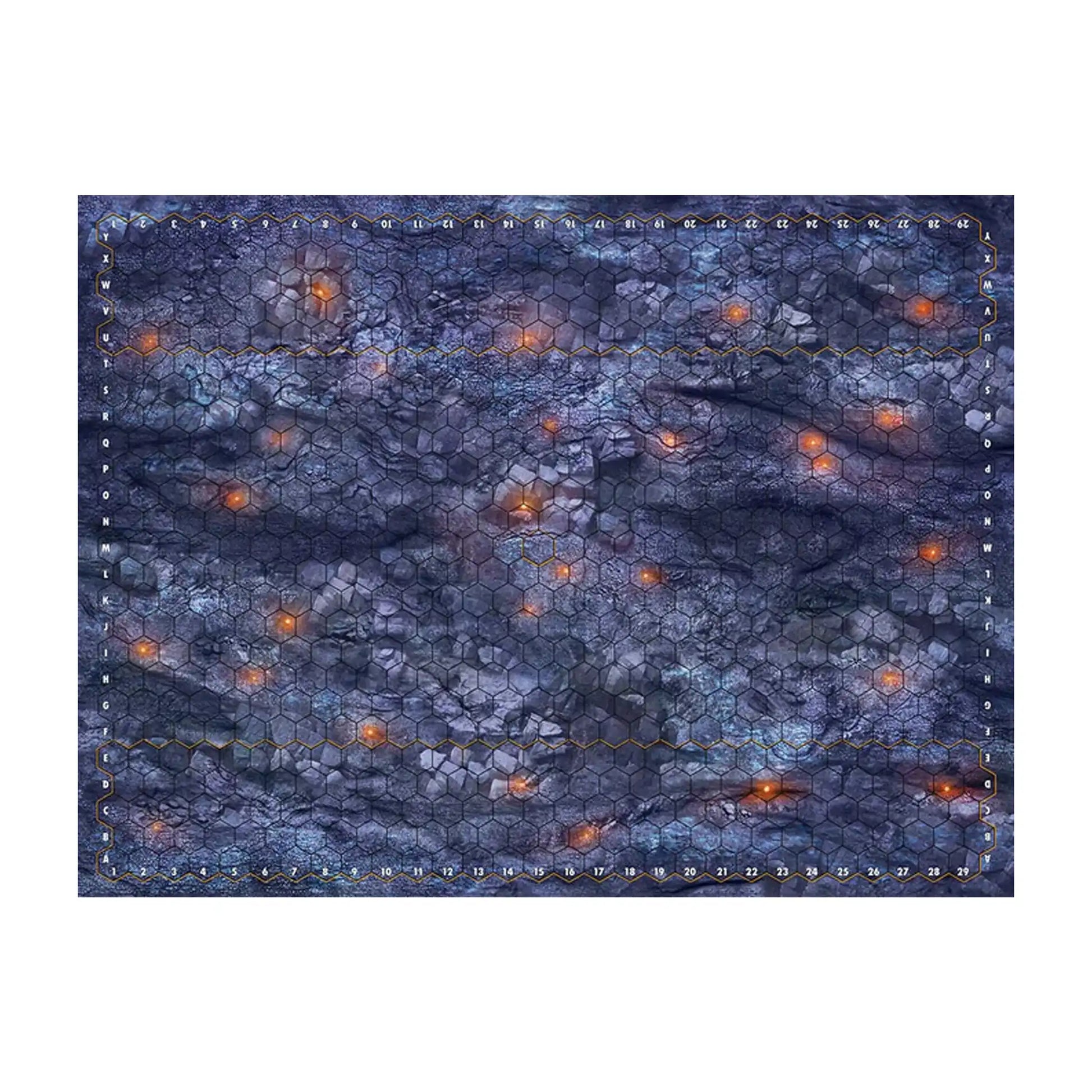 Diese mit viel Liebe zum Detail gestaltete Spielmatte spiegelt die Landschaft des Drachengebiets in einer dunklen, felsigen Landschaft mit glühenden Feuern wider.