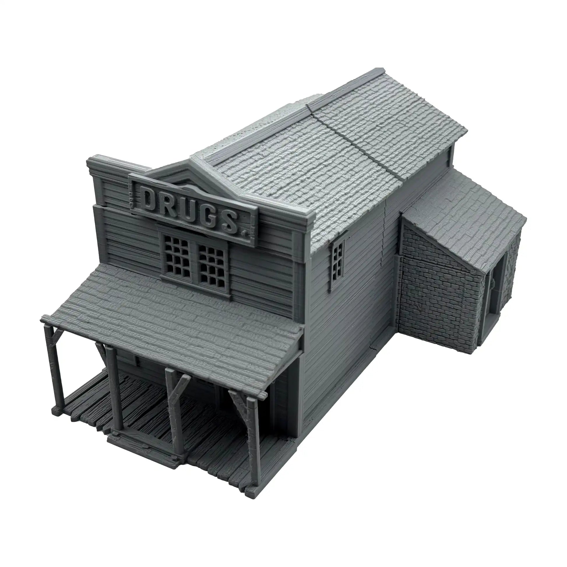 Der Drugstore hat ein abnehmbares Dach, ist auf insgesamt zwei Ebenen bespielbar und hat durchsichtbare Fenster und besticht zudem durch ein einzigartiges Interieur. Alle Türen sind beweglich und können geöffnet oder geschlossen werden. Sämtliche Elemente wie z. B. Wände und Dach können mit eckigen 4x2 mm Magneten (nicht im Lieferumfang enthalten) verbunden werden und verhindern somit ein verrutschen der Komponenten..
