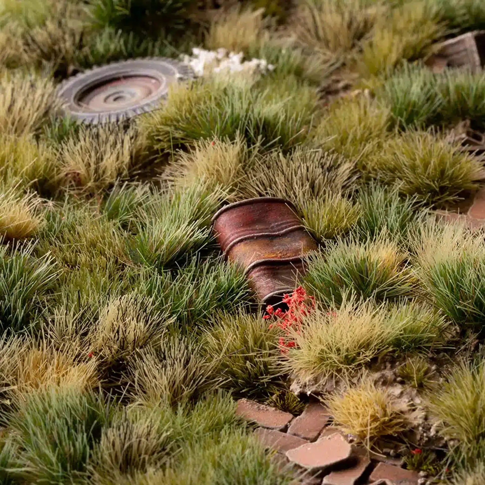 Stark gesättigte grüne Grasbüschel. Am besten geeignet, um warme und feuchte Lebensräume mit dichter Vegetation nachzubilden, wie z. B. das Unterholz des Regenwaldes oder üppige Feuchtwiesen und Sumpfgebiete. Kann auch mit anderen grünen Büscheln gemischt werden, um deinen Kulissen eine realistischere Farbvielfalt zu verleihen.