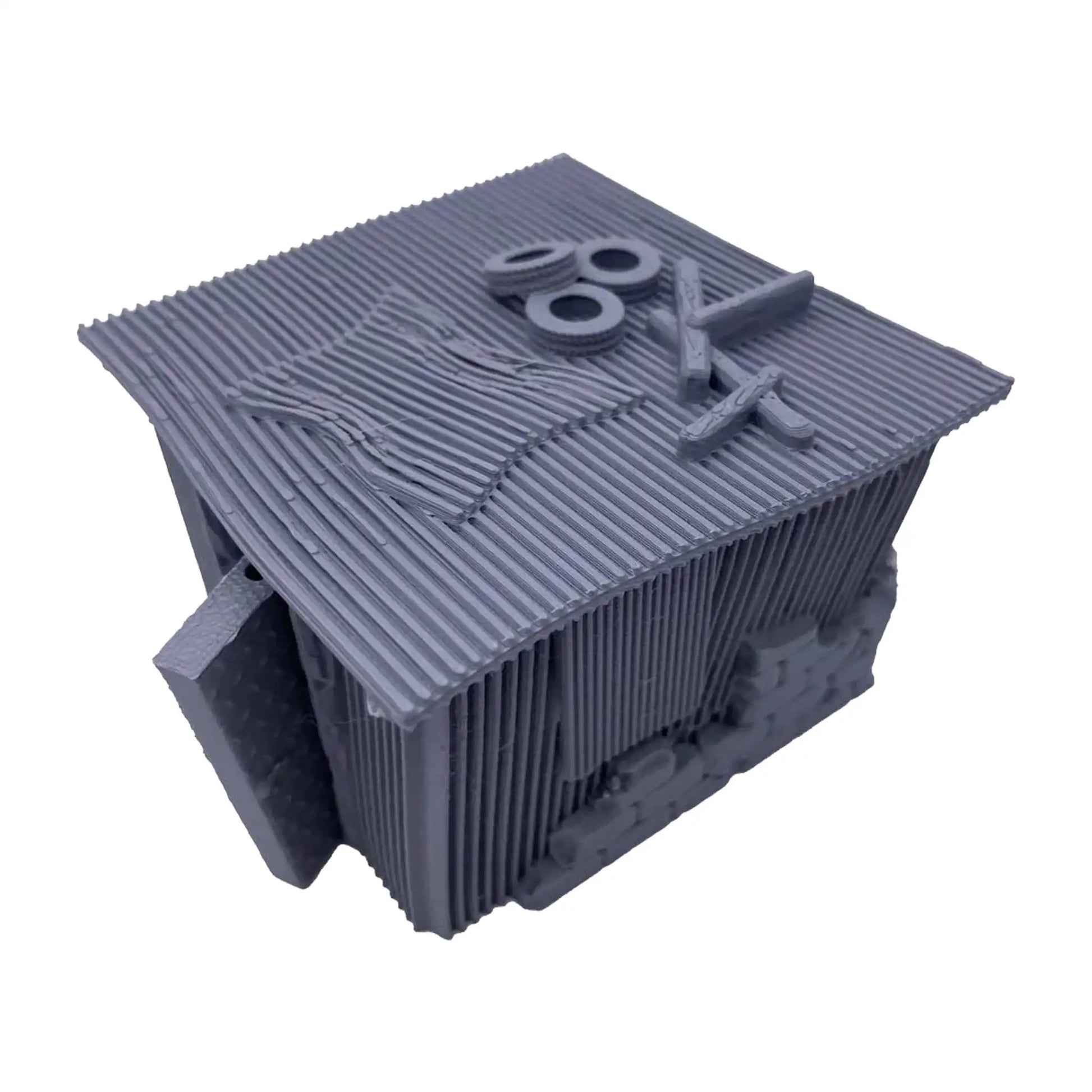 Kreiere mit diesem moduldaren Geländestück deine eigene postapokalytpische Welt im Shanty Town Stil und erschaffe dir ein sagenhaftes Spielfeld in Form einer Kolonie. Das abgebildete Modell ist aus hochbeständigem mattem PLA in 0,16 mm Layer Auflösung und in grauer Farbe mit hervorragenden Details gedruckt und wird unbemalt geliefert.