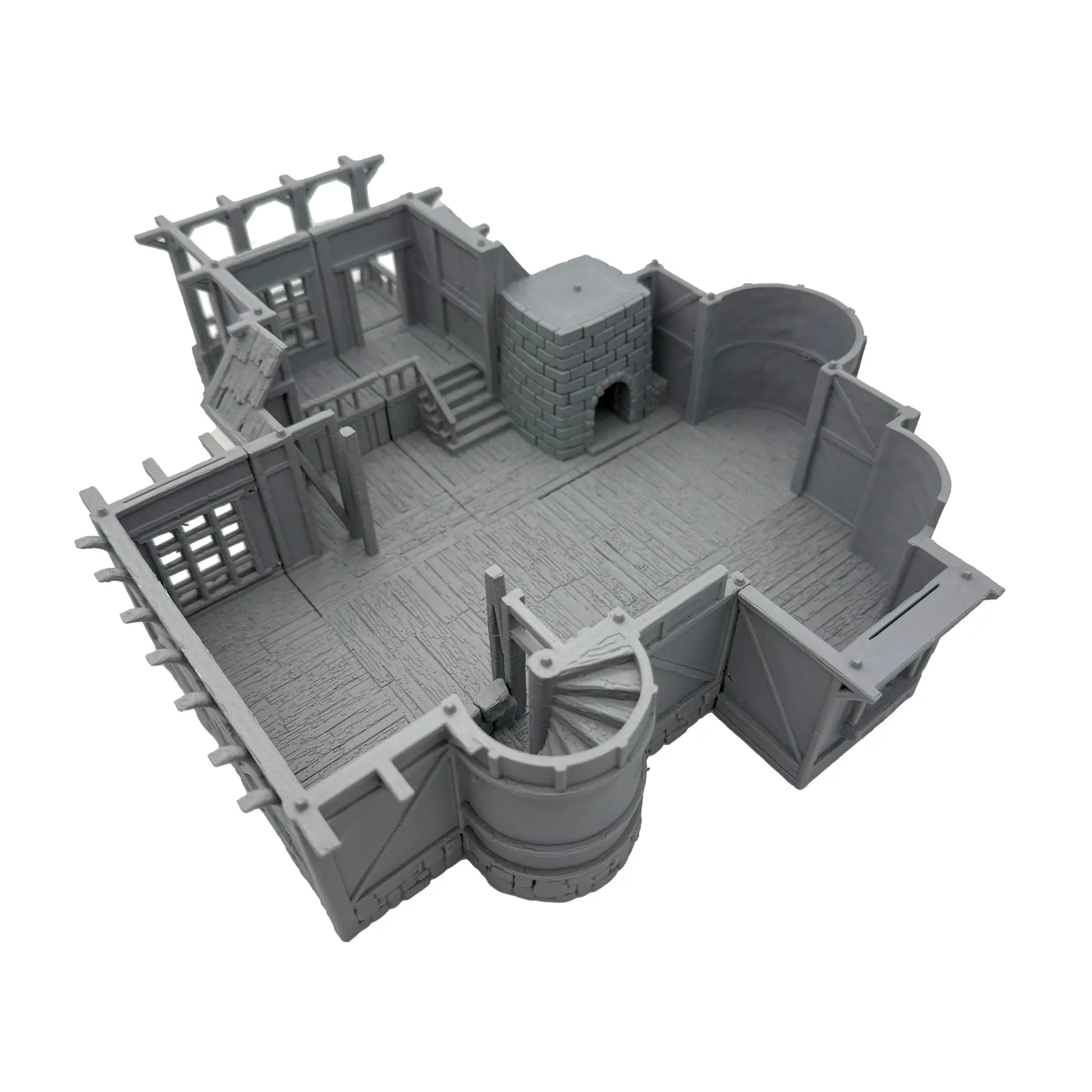 Die Taverne hat zwei bespielbare Ebene und abnehmbare Dächer. Das Interior der Taverne hat einen strukturierten Holzboden und einen aus Stein gemauerten Kamin, eine Ausschanktheke sowie 3 Schilder die optional am Eingang der Taverne angebracht werden können. Die Fenster sind durchsichtig, die Türen beweglich.