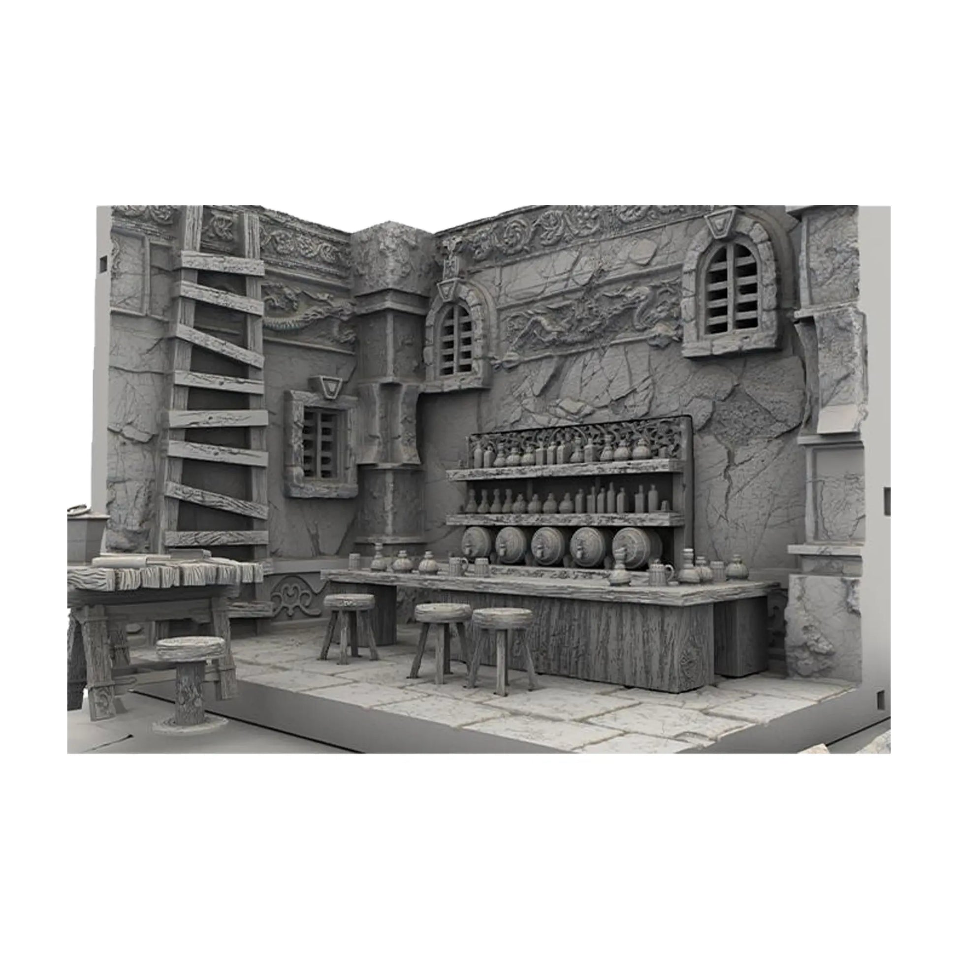 Mit diesem hochdetaillierten in Resin gedruckten Geländestück kannst du dir deine eigene Zwergenstadt errichten und eine einzigartige Spielwelt erschaffen. Das Haus und die Dekorationen sind so skaliert, dass sie zu 30 mm Tabletop Spielsysteme passen. Jedes Haus aus dieser Serie ist Innen bespielbar durch abnehmbare Dächer, haben ein detailliertes Innenleben und bewegliche Türen. Der Bausatz besteht aus 58 Teilen und wird unbemalt geliefert.