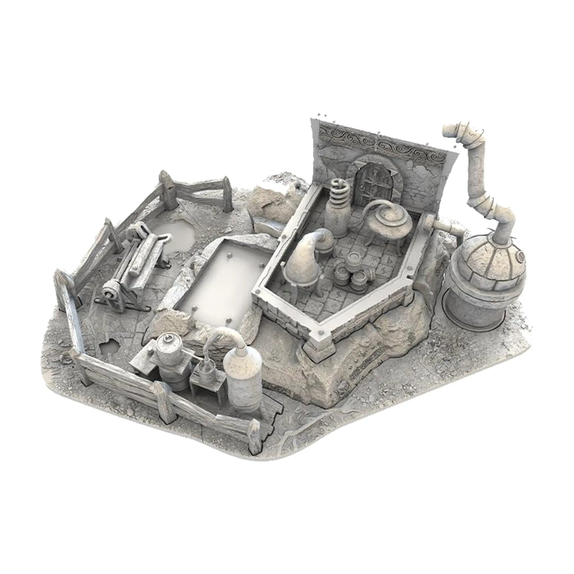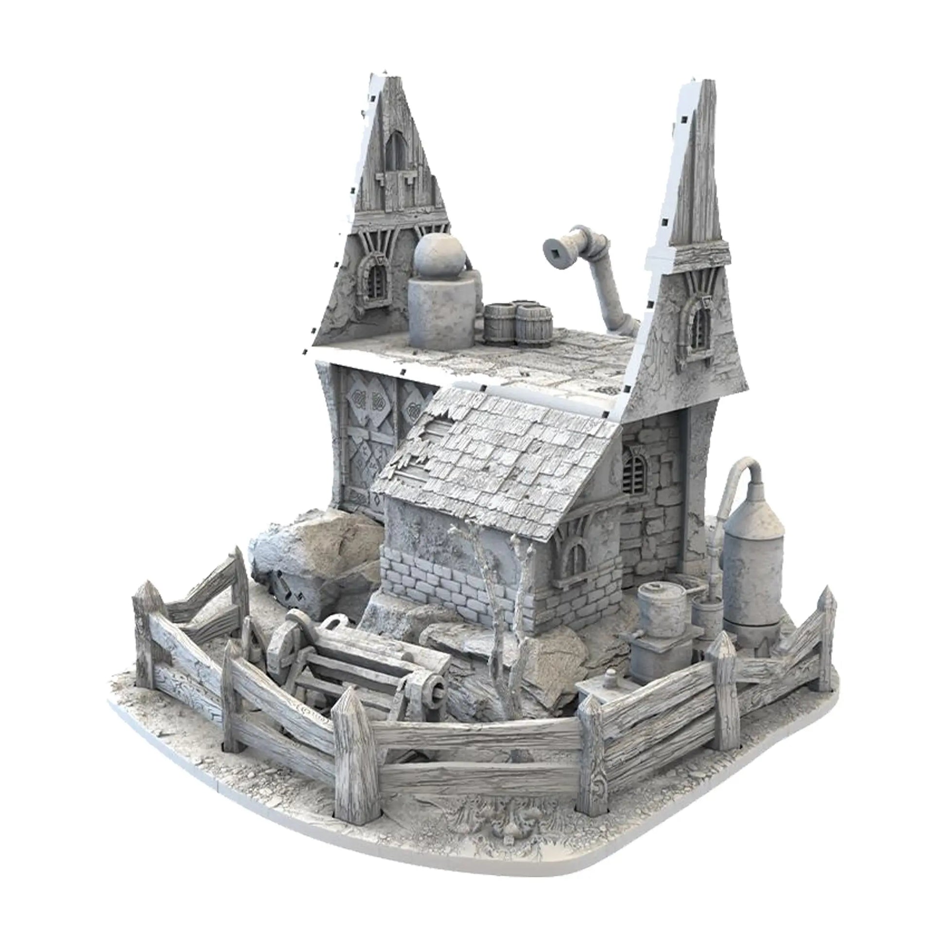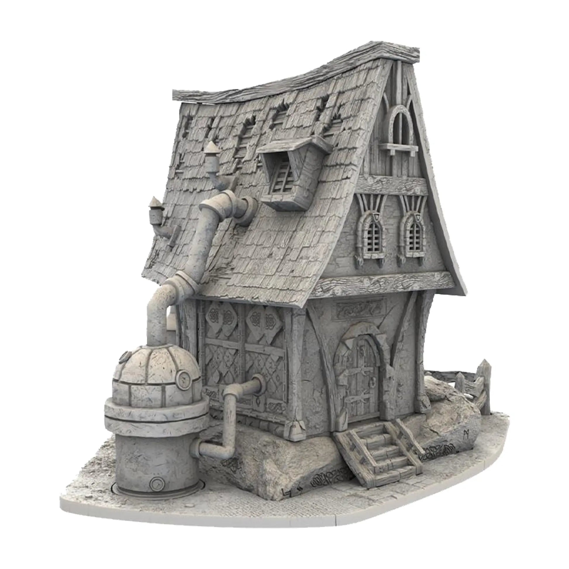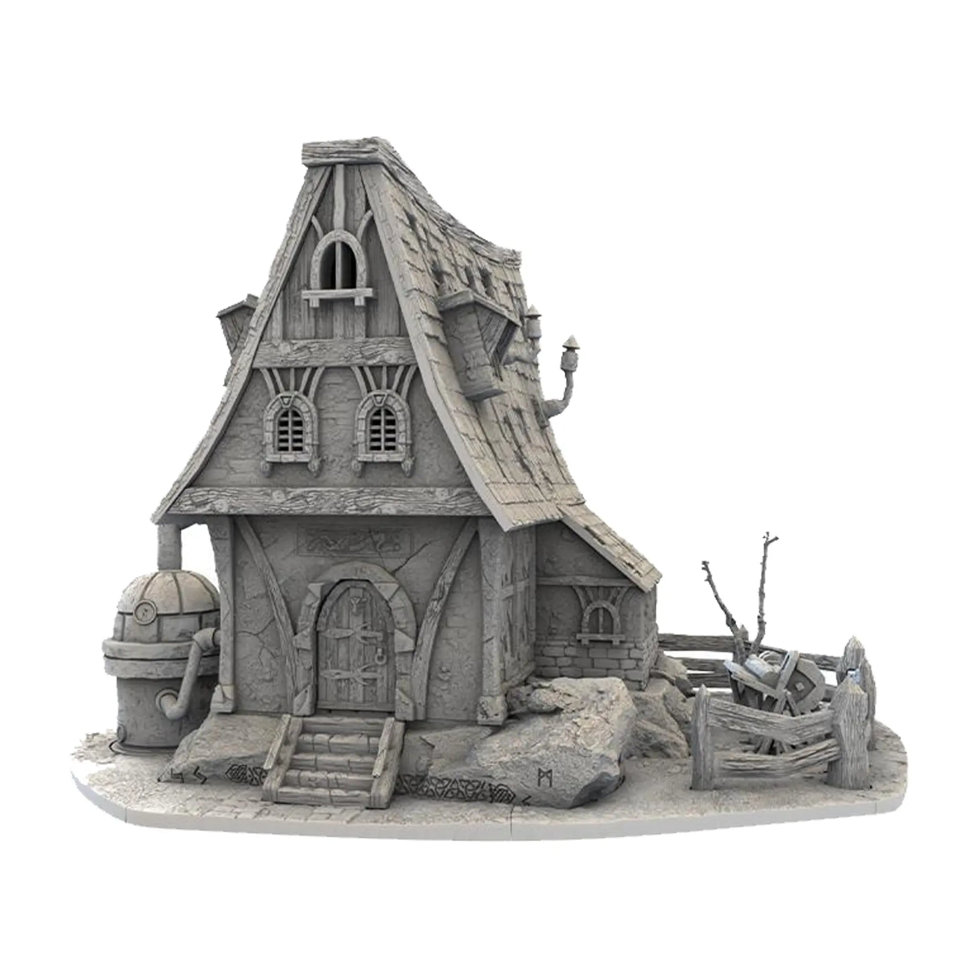 Mit diesem hochdetaillierten in Resin gedruckten Geländestück kannst du dir deine eigene Zwergenstadt errichten und eine einzigartige Spielwelt erschaffen. Das Haus und die Dekorationen sind so skaliert, dass sie zu 30 mm Tabletop Spielsysteme passen. Jedes Haus aus dieser Serie ist Innen bespielbar durch abnehmbare Dächer, haben ein detailliertes Innenleben und bewegliche Türen. Der Bausatz besteht aus 58 Teilen und wird unbemalt geliefert.